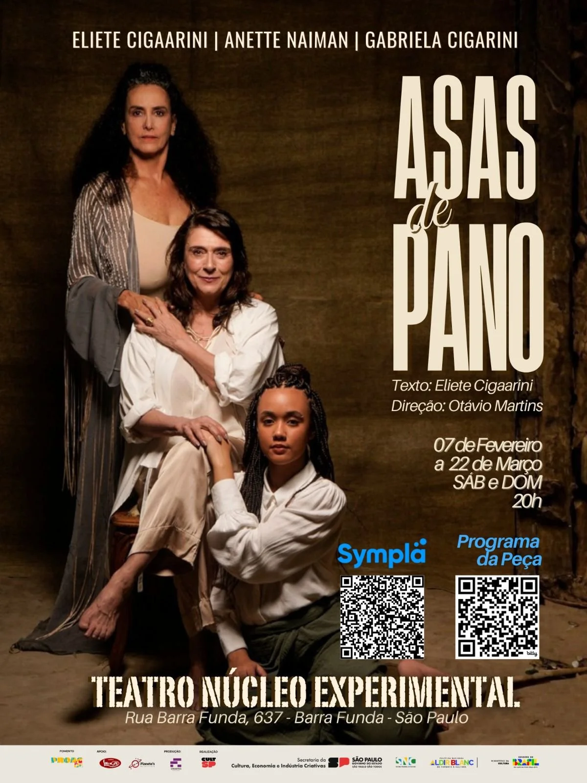 Com direção artística e supervisão dramatúrgica de Otávio Martins, o espetáculo reúne no elenco Eliete Cigaarini, Anette Naiman e Gabriela Cigarini. A direção de arte é de Armando Filho, com cenografia de Marcelo Andrade e trilha sonora de João Pedro Martins.
